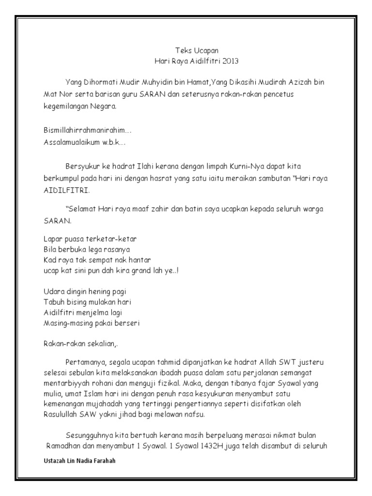 Karangan sambutan hari raya aidilfitri. Contoh karangan bahasa arab hari raya aidilfitri teks naskah khutbah idul fitri 2021 dalam bahasa jawa silaturahmi ing swasana pandemi. Kami berasa seronok berhari raya bersama nenek di kampung.